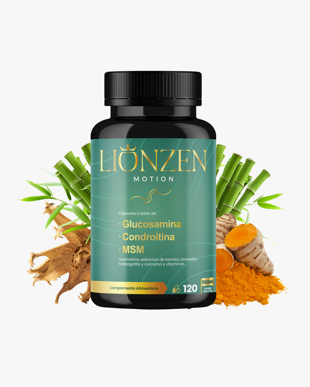 Lionzen Motion combina glucosamina, condroitina y MSM junto con extractos botánicos como cúrcuma, boswellia y harpagofito, más un complejo de vitaminas y minerales (C, D3, K2, E y zinc). Esta sinergia lo convierte en una fórmula mucho más completa que la mayoría de productos del mercado, que suelen centrarse solo en 1 o 2 ingredientes.